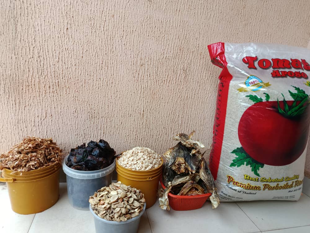 This food combo includes a 40kg bag of rice along with 50 medium catfish, 5 large stockfish heads, a pint of crayfish, a pint of egusi, and half a pint of ogbono. Ideal for family meals or gatherings, it also features free delivery to your location.
