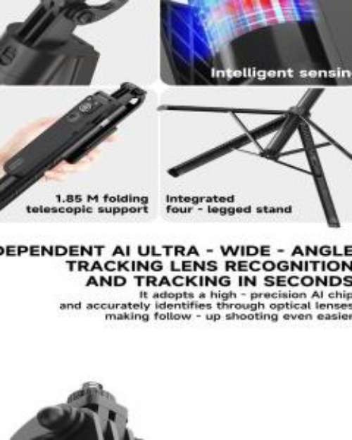 Capture perfect photos and videos with this AI-powered rotating selfie stick. It features intelligent tracking to keep you in frame automatically. Ideal for vlogging, live streaming, and group shots, ensuring smooth and stable footage every time.