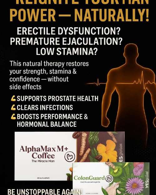 π₯ Itβs Time To Recharge Your Strength, Inside & Out! πͺ As a man, are you tired of feeling weak or low on energy? Itβs time to cleanse, recharge, and perform at your peak β day & night! β‘ β ALPHAMAX COFFEE is your all-in-one natural performance booster! β Eliminates Erectile Dysfunction, Premature Ejaculation & Prostate issues β Boosts stamina, testosterone & confidence naturally β Improves blood flow and fights fatigue πΏ π COLONGUARD complements your wellness by cleansing from within: