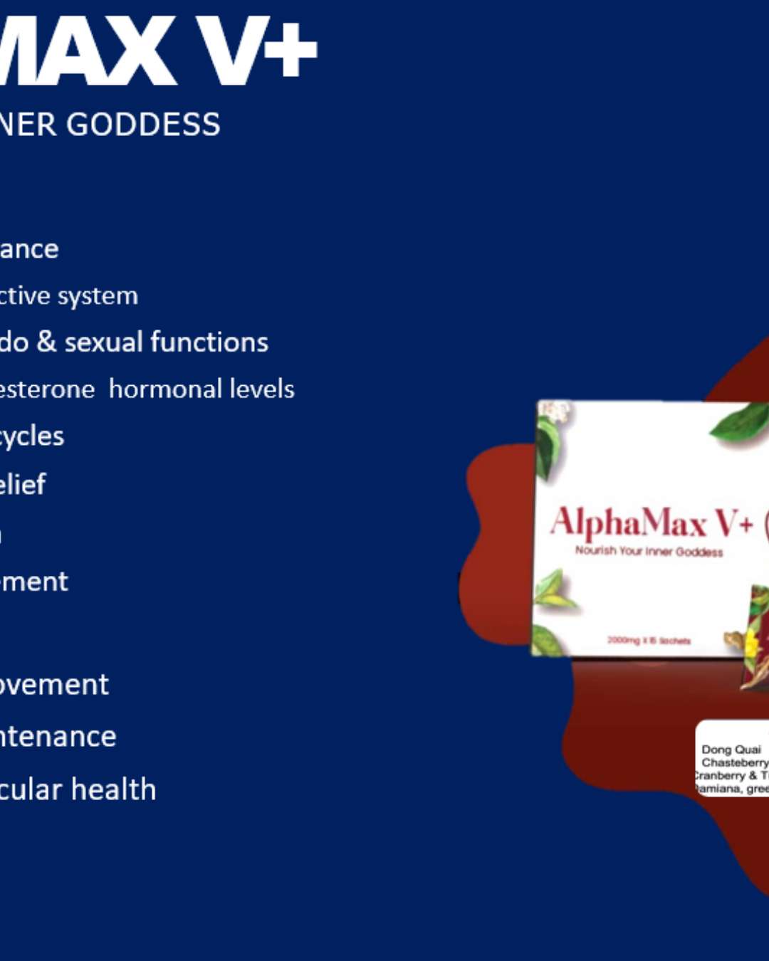 AlphaMax V+ is a transformative supplement designed to enhance women's health. It supports hormonal balance, improves sleep quality, and boosts energy levels while promoting skin and hair health.