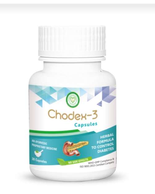 Chodex 3 is an Ayurvedic formulation designed to manage hypoglycemia and related disorders. It helps in controlling non-insulin-dependent diabetes mellitus and supports overall metabolic health.
