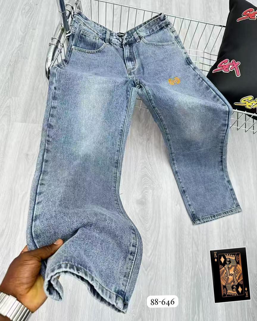 These blue jeans feature a timeless fit that complements any wardrobe. Made from durable denim, they ensure comfort for daily wear. Available in a variety of sizes.