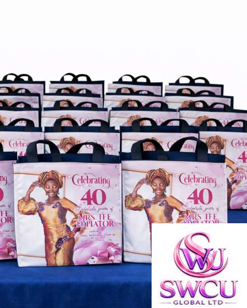 Make your event unforgettable with our customized souvenir bags—beautifully designed, durable, reusable, strong, spacious, insulated and finished to high-quality standards. More than gift bags, they are practical keepsakes your guests will value and use. We personalize each bag with the celebrant’s photo, event details, names, messages, logos, colors and branding, just as shown in the sample—turning your vision into a unique custom souvenir. Perfect for birthdays, weddings, anniversaries, churches, schools, corporate events and special celebrations. ✔ Personalized photo printing ✔ Event branding and custom information imprinting ✔ Strong handles and spacious gusseted structure ✔ Durable, reusable and insulated design ✔ Premium high-quality finishing Give your guests a souvenir they will remember long after the event. 📩 Send a message now to customize yours and book your order. 🌍 Worldwide delivery available.
