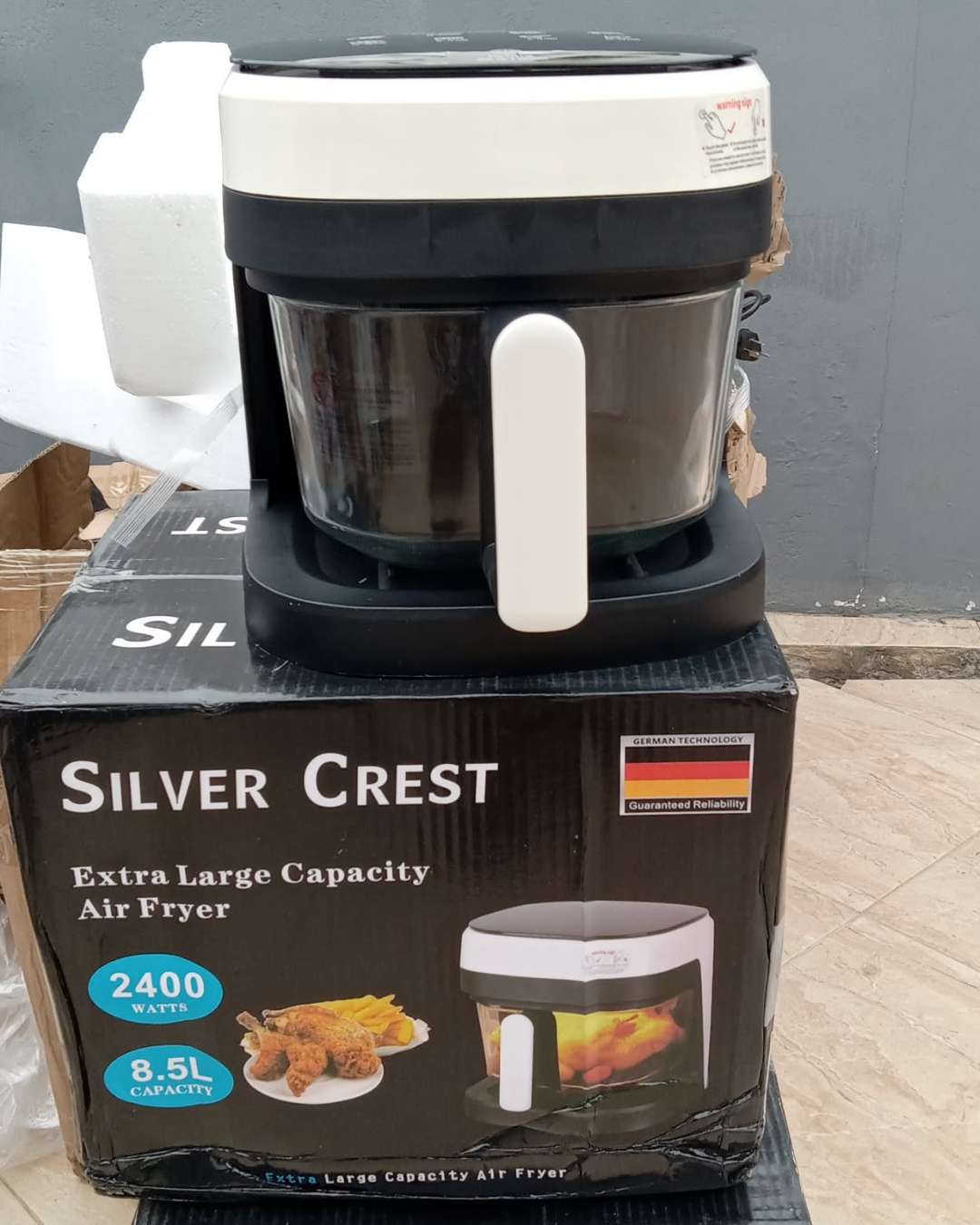 This air fryer features an 8.5L glass basket, perfect for cooking large meals. Enjoy healthier fried foods with less oil and easy cleanup.
