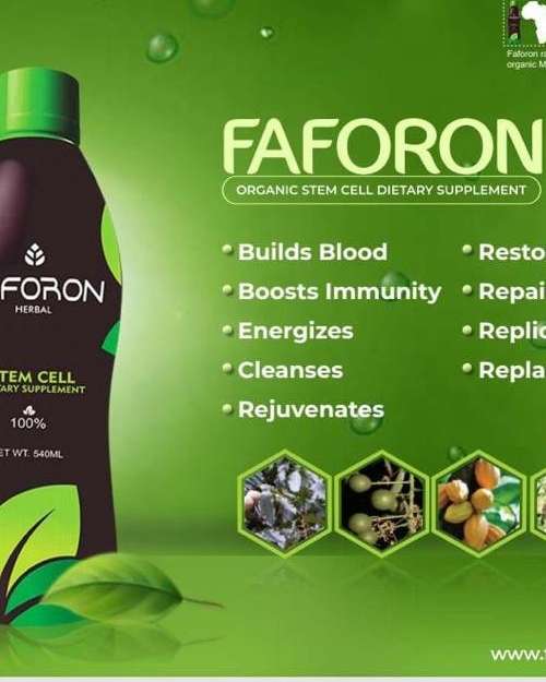 Faforon herbal, organic blood builder, stem cell therapy supplement. Health Benefits of Faforon: Blood Health: Faforon builds blood. Immunity: Faforon boosts immunity. Energy: Faforon energizes the body. System Cleanse: Faforon cleanses the system. Total Restoration: Faforon rejuvenates, restores, and repairs cells. Cellular Action: Faforon replicates and replaces damaged cells. place your order now! Faforon herbal, organic blood builder, stem cell therapy supplement