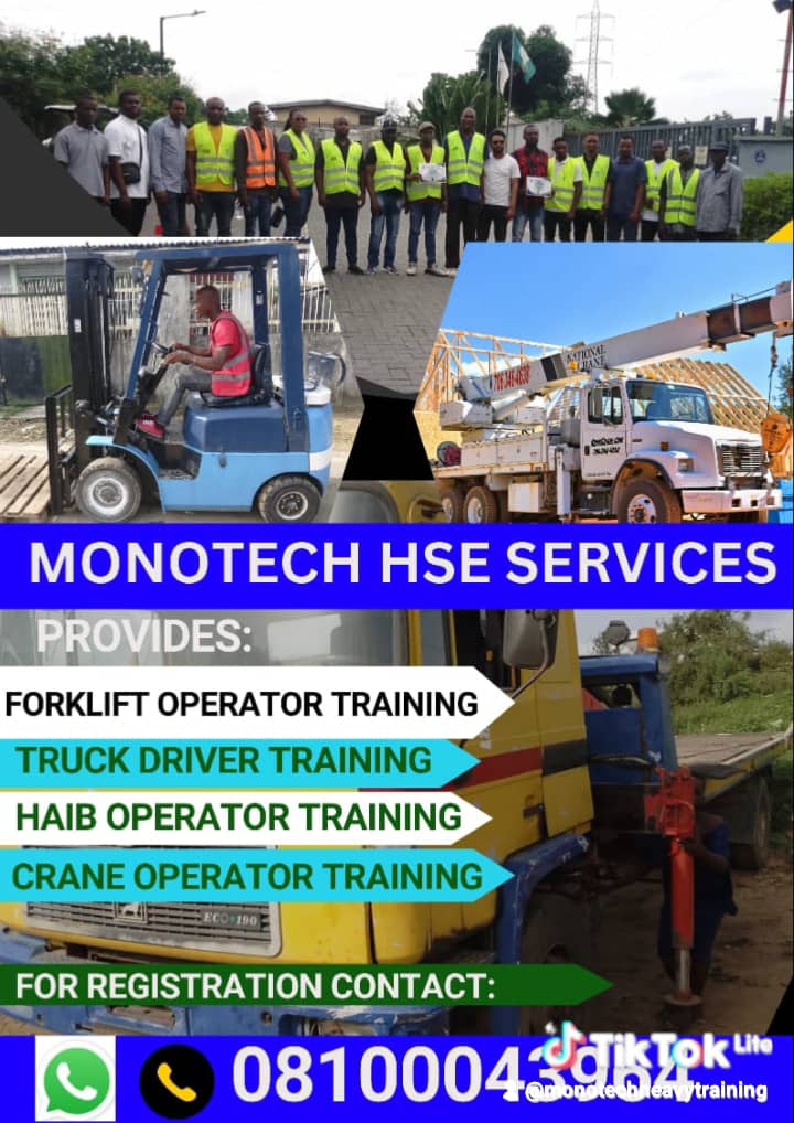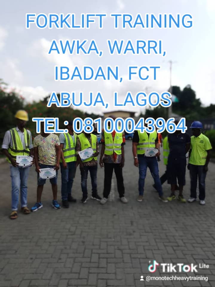 *FORKLIFT - OPERATION INTENSIVE PRACTICAL TRAINING FOR BEGINNERS WITH CERTIFICATE OF COMPETENCY* _WHATSAPP NO. 08100043964_ *TRAINING FEE;* _150K_ *OUR FORKLIFT TRAINING BRANCHES/LOCATION'S IN LAGOS:* *OSHODI TRAINING SCHEDULE/PROGRAM DURATION:* 3 WEEKENDS TRAINING SATURDAYS AND SUNDAYS TRAINING ONLY AT OUR OSHODI TRAINING CENTER *OUR MILE2/APAPA TRAINING CENTER:* RUNS FROM MONDAYS TO FRIDAYS TRAINING ONLY ( 6-DAYS ) INTENSIVE PRACTICAL TRAINING. *OUR IKORODU/MILE-12 CENTER:* RUNS EVERY SECOND WEEK OF THE MONTH FROM MONDAYS TO FRIDAYS TRAINING ONLY. *HOW TO REGISTER FOR THE TRAINING:* FEE/COST: 150K FEE INCLUDE PROFESSIONAL CERTIFICATE OF COMPETENCY ISSUED WHICH CAN BE VERIFIED VIA A BAR CODE ONLINE, SOFT COPY TRAINING MATERIAL MANUAL AND TRADE TEST CERTIFICATE AT ADDITIONAL COST OF 40K (BUT OPTIONAL IF NEEDED) *PLS KINDLY COME ALONG WITH A PASSPORT SIZE PHOTOGRAPH FOR YOUR REGISTRATION FORM AND FULL PAYMENT IN BANK π¦ TRANSFER PREFERABLY AT THE TRAINING CENTER ONLY...* *OSHODI TRAINING CENTER/VENUE AND ADDRESS :* ADEYEMI BERO CRESCENT BY BARRACKS BUS STOP BESIDES TGI GROUP NEAR LASTMA OFFICE OSHODI, LAGOS. AND THEN CALL OR Whatsapp DM +2348100043964 FOR EASY DIRECTIONS TO THE VENUE. *APAPA - AJEGUNLE TRAINING CENTER ADDRESS:* 1 Odofin Akinsaya street by Godo bus stop ajegunle, Lagos. CALL π€:* _FOR OTHER CENTERS VENUE AND ADDRESS AND CONTACT._ *TIME β°ππ°οΈ* : 7AM DAILY FOR MORE INQUIRIES TEL: DM - *+2348100043964* *YOU CAN EASILY JOIN OUR WHATSAPP GROUP VIA THE LINK BELOW:* https://chat.whatsapp.com/Kcv5mIVRjsFIJ3tJFfuGFF