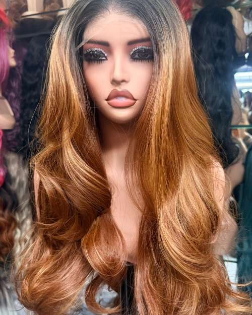 HD frontal lace 30" inches gold wavy bounce hair