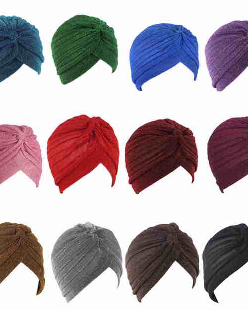 Glittery Material, easy to wear, ready to wear turban caps Available in 13 colors