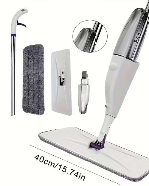 Healthy Spray Mop (Clean, Degerming, Maintaining - All in One). Suitable for Wood, Laminate, Marble Floors, Wet and Dry Cleaning. Adjustable Handle for Convenient Cleaning in Kitchen/Bedroom/Living Room. Key Features: Mop Comes With a Water Tank - Can Add Cleaning Solution Rotating Drag Head Adjustable Handle Material - Stainless Steel Size - Large 2 Washable Microfiber Pads Super Handy and Portable Specifications:Colour: White