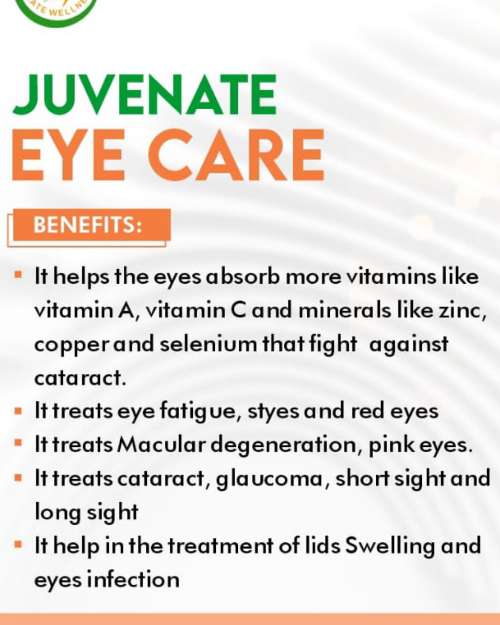 Juvenste Eyecare supports eye health by enhancing vitamin absorption and combating common issues like fatigue and infections. It is specifically formulated to address conditions such as glaucoma and macular degeneration. Restore your vision with Juvenate Eye Cure. This formula provides essential vitamins to fight cataracts, glaucoma, and macular degeneration. Order Juvenate Eye Cure today! 6 Key Health Benefits: Fights Cataracts: Juvenate Eye Care helps eyes absorb Vitamin A, C, and Zinc to combat cataracts. Treats Glaucoma: Use Juvenate Eye Cure to support the treatment of glaucoma symptoms. Ends Eye Fatigue: Juvenate Eye Care quickly relieves eye strain, styes, and red eyes. Prevents Degeneration: Juvenate Eye Care targets macular degeneration of the eyes. Reduces Swelling: Juvenate Eye Care is effective in treating eyelid swelling and infections. Nutrient Boost: Juvenate Eye Care provides Copper and Selenium for total optical health. Products Bought Alongside: Juvenate Diabetic and Pancreas: Diabetics should use Juvenate Eye Cure to protect their vision from sugar damage.