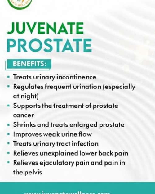 Juvenate Prostate Care supports urinary health by regulating frequent urination and improving weak urine flow. It aids in the treatment of prostate cancer and helps alleviate lower back pain and pelvic discomfort. This formula is designed for those seeking relief from urinary tract infections and related issues.