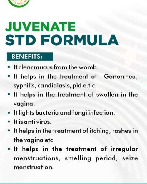 Juvenate STD Care is designed to support the treatment of various infections such as gonorrhea, syphilis, and candidiasis. It helps clear mucus from the womb and alleviates swelling and discomfort in the vaginal area. This formula also acts as a powerful anti-virus, targeting bacteria and fungi effectively.