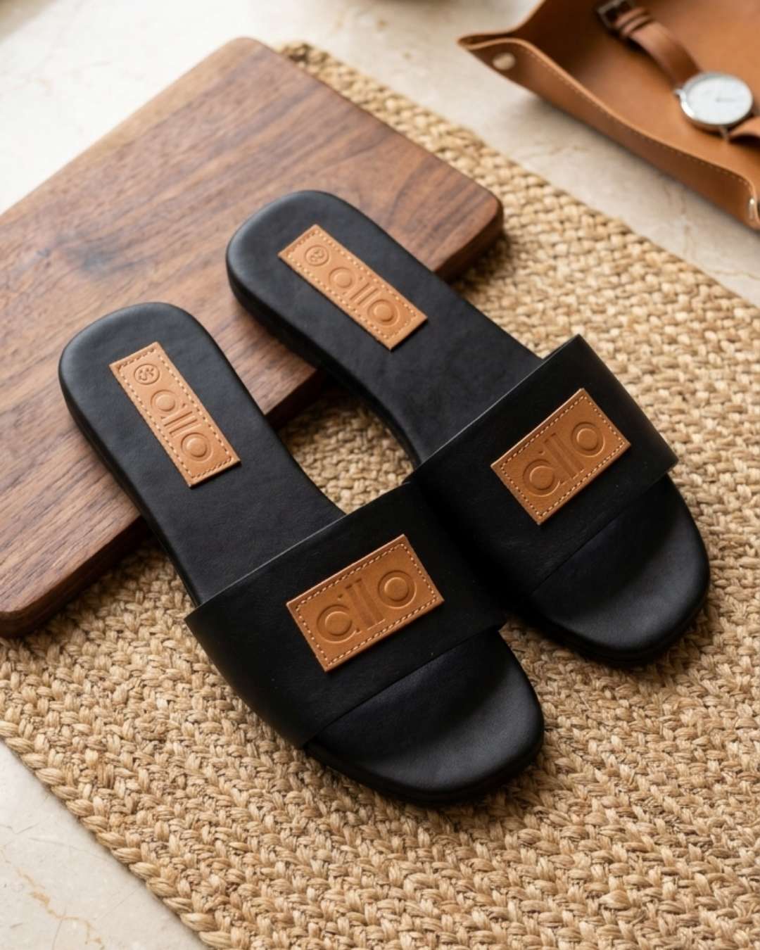 Simple, stylish, and made for everyday wear. These elegant slide sandals feature a smooth flat sole and a modern textured logo detail. Designed with comfort and effortless fashion in mind, they are perfect for casual outings, relaxed weekends, beach days, or brunch. Key Benefits: Light and Comfortable: Easy to wear throughout the day Easy to Match: Black with chocolate brown and tan tones suit many outfits Modern Design: Clean square-toe finish for a stylish look Strong Sole: Built for du