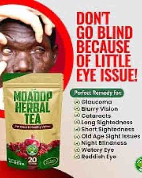 Moadop Herbal Eye Tea is a soothing blend designed to support eye health. It addresses various eye concerns, including glaucoma, cataracts, and blurry vision, providing natural relief for itchy and watery eyes.