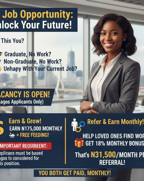 Job Vacancy in Lagos: ₦175,000 Monthly + Free Meals