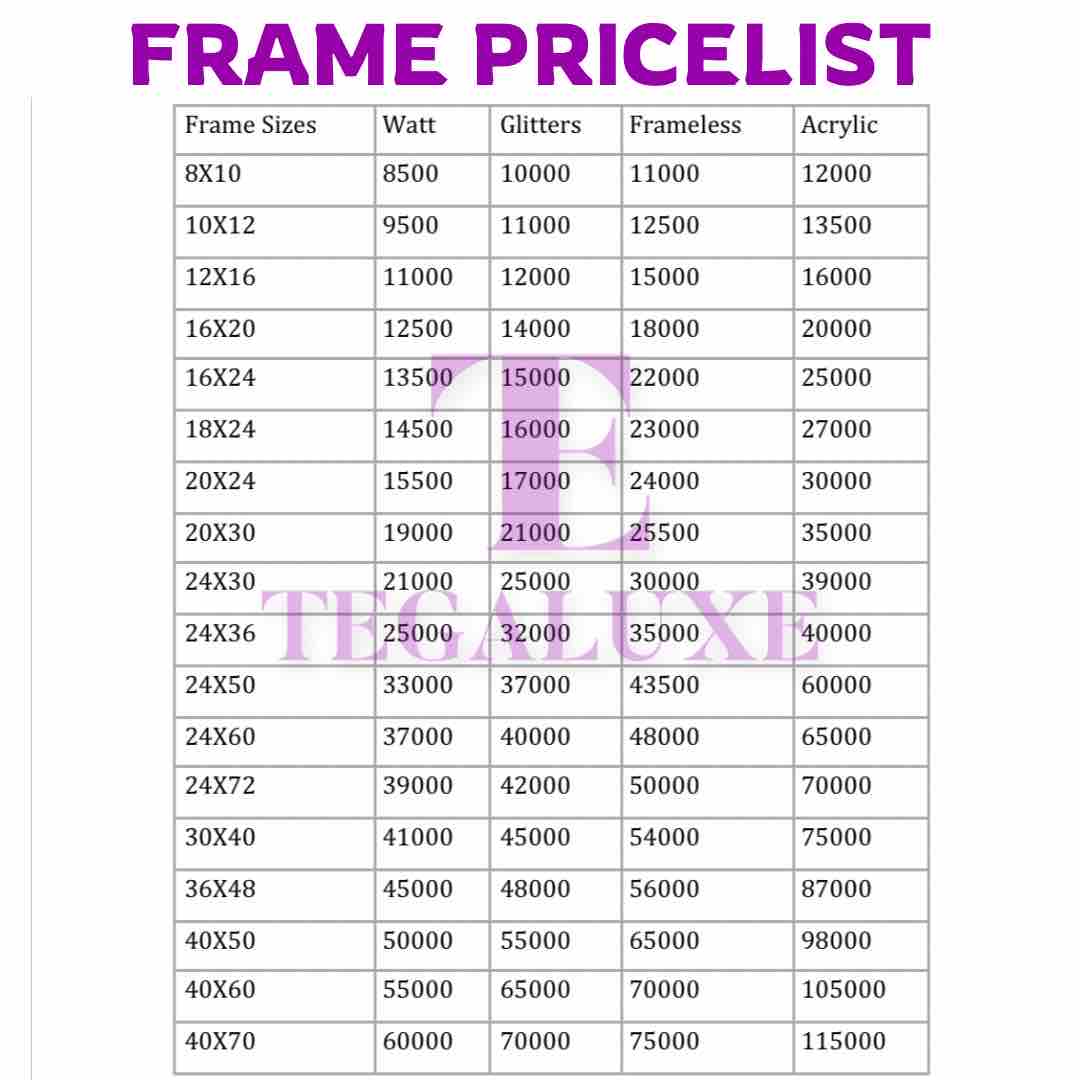 Check last slide for sizes and prices