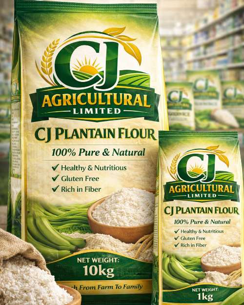 plantain flour , Rice, Garri igebu etc