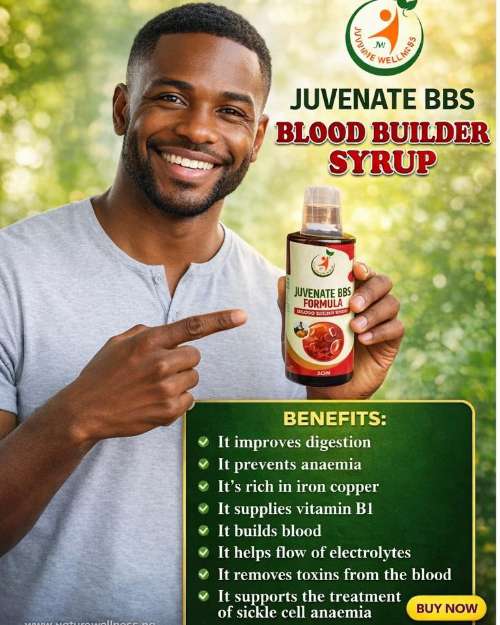 Juvenate Blood Builder Syrup is designed to support healthy blood production with essential Vitamin B1. It aids in the flow of electrolytes and helps detoxify the blood, making it beneficial for those managing sickle cell anemia. Boost your iron and copper levels with Juvenate Blood Builder Syrup Formula. Juvenate BBS Syrup effectively prevents anaemia by supporting natural blood formation. Key Health Benefits: Prevents Anaemia: Juvenate BBS Formula is rich in blood-forming organic nutrients to keep your count high. Total Body Detox: Use Juvenate BBS Formula to effectively remove harmful toxins from your bloodstream. Sickle Cell Support: Juvenate BBS Formula helps in the management and treatment of sickle cell anaemia. Rich in Iron & Copper: Juvenate BBC Formula provides essential minerals like iron and copper for blood health. Nutrient Fortification: Juvenate BBS Formula is fortified with vitamins, including B1, to nourish the whole body. Electrolyte Flow: Juvenate BBS Formula helps maintain the healthy flow of electrolytes throughout your system. Products Bought Alongside: Juvenate CC2 Formula: Use Juvenate CC2 Formula to clear the colon so Juvenate BBC Formula can purify the blood more efficiently.