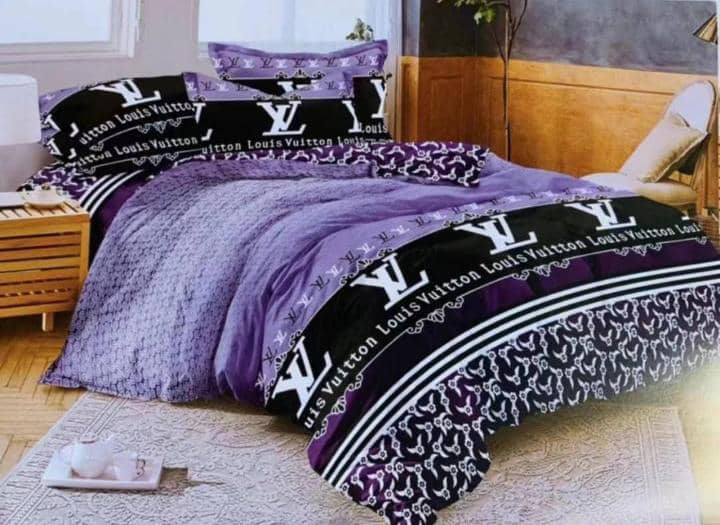 This luxurious purple bedding set includes a duvet, a sheet, and four pillowcases. Made from high-quality materials, it ensures a comfortable and elegant sleeping experience.