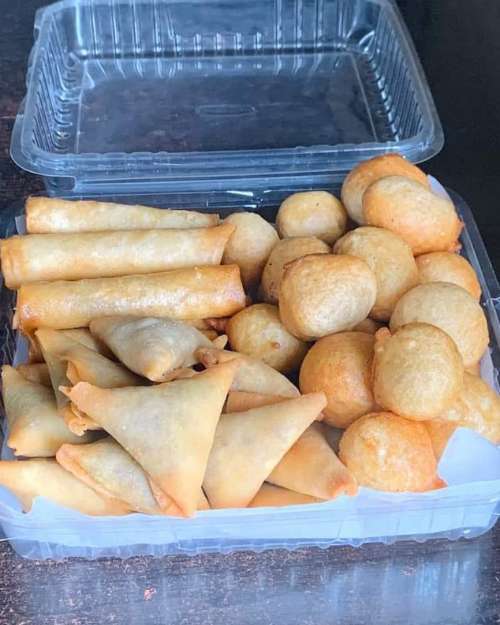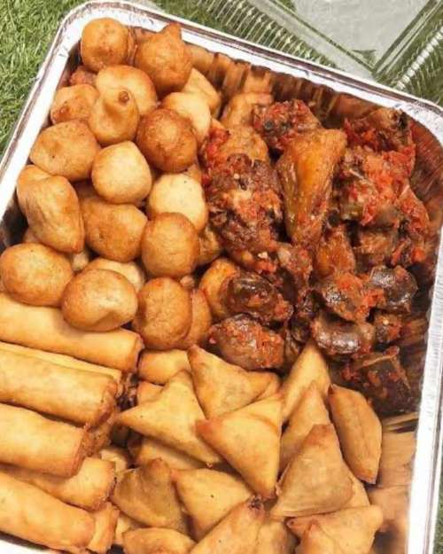 "Spice up your event with our tasty small chops! π spring rolls & samosa and puff - puff with spicy chicken, beef or turkey, garnish with gizzards and plantains perfect finger foods for parties, meetings, or gatherings. Freshly made with love, guaranteed to satisfy! π Order now and wow your guests!"