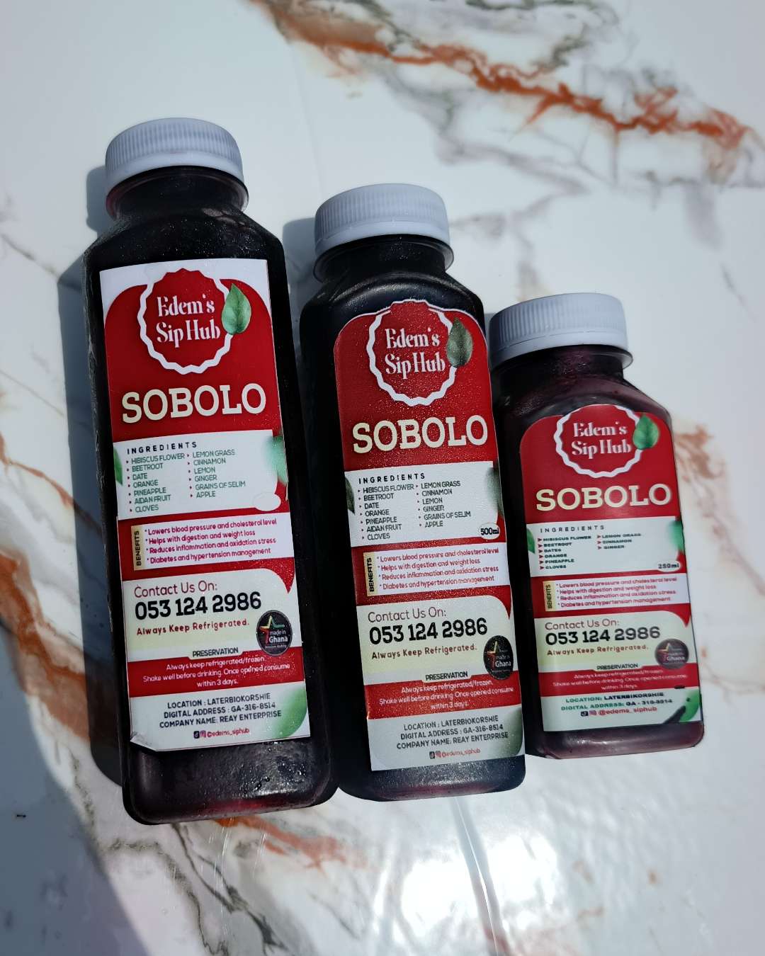 Edem's siphub sobolo is a refreshing beverage made from hibiscus leaves, perfect for quenching your thirst. Enjoy its unique flavor and natural ingredients, ideal for any occasion.