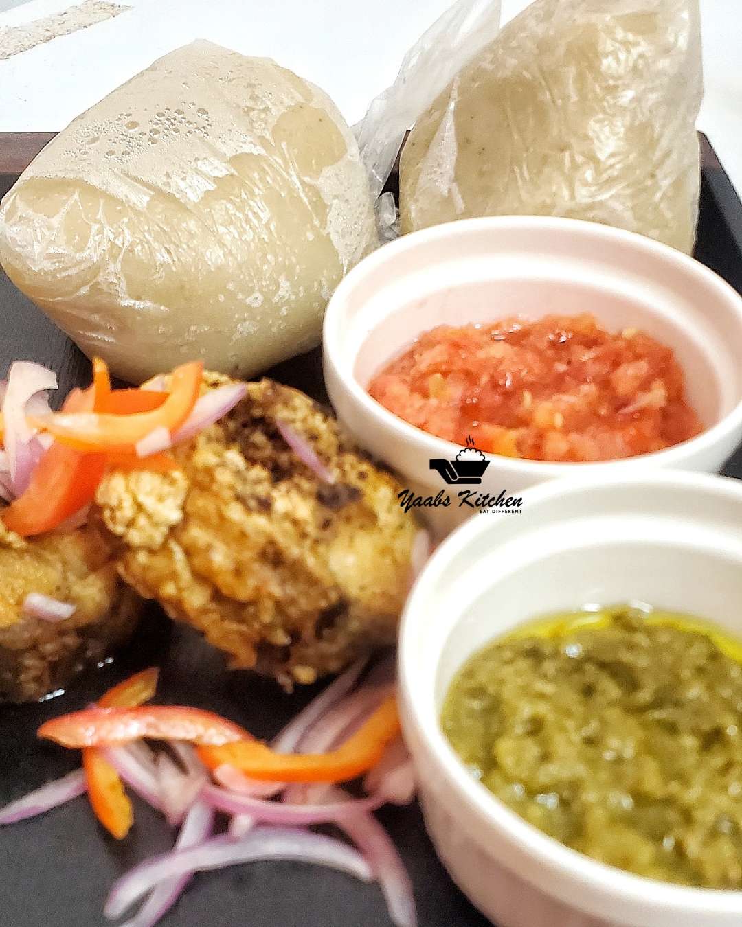 Enjoy soft and smooth banku with pepper and fried fish. Perfect for customizing with your choice of protein and sides, it's a delightful addition to your meals.