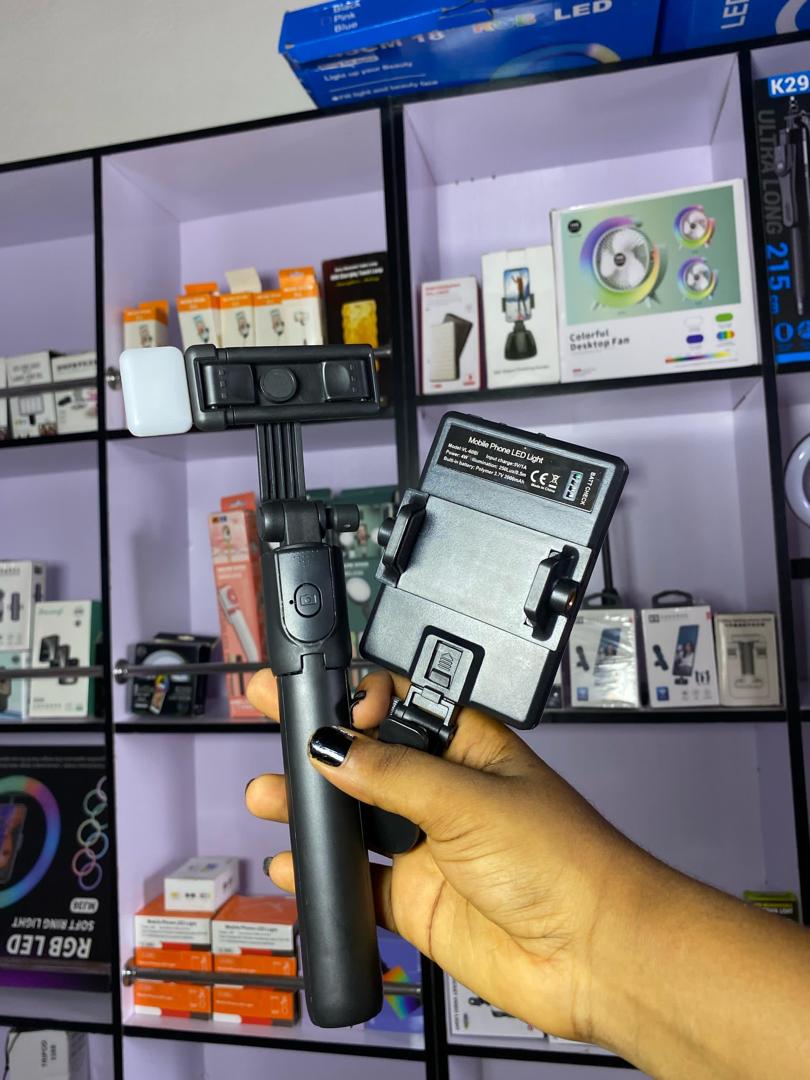 This combo features a durable tripod and a powerful LED light, ideal for capturing high-quality photos and videos. Its adjustable design ensures stability and optimal lighting for all your creative endeavors.