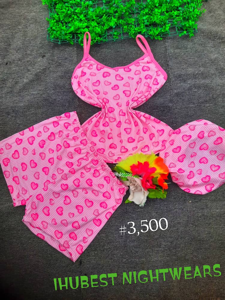 This nightwear set features a nightee, shorts, and a singlet, designed for ultimate comfort. Crafted from soft, breathable fabric, it’s ideal for relaxing evenings at home.