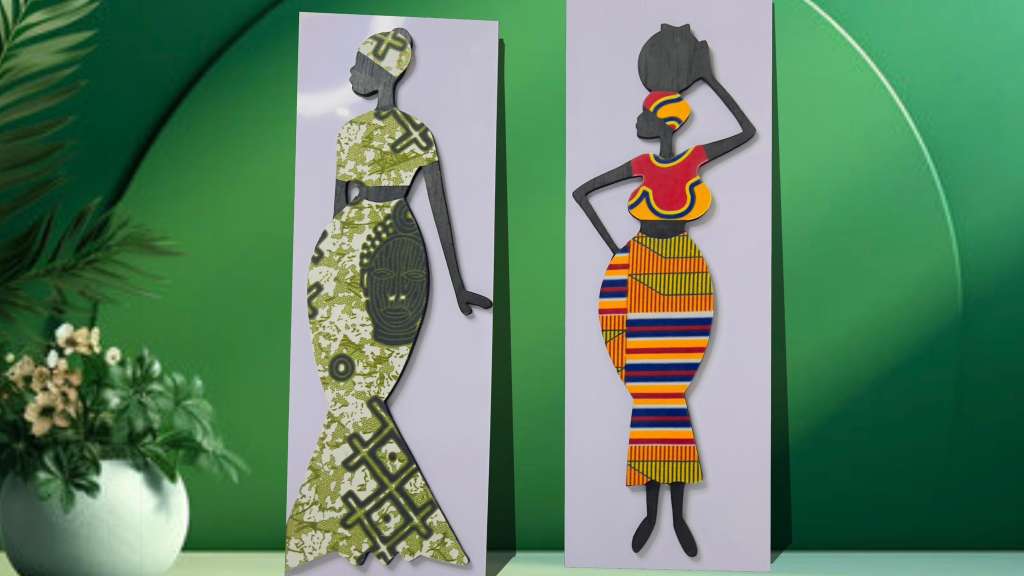 This unique fabric collage highlights African iden ...